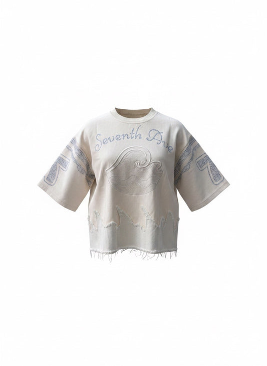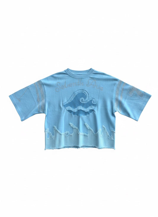 Blue Rhinestone Cropped Heavy Duty Shirt