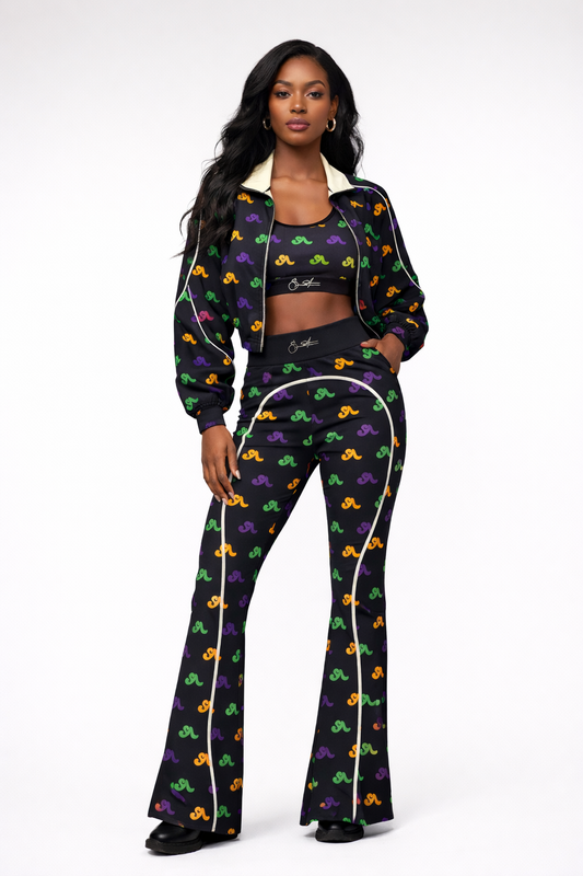 WAVES Women's Mardi Gras Nylon Tracksuit Set (Cropped Jacket + Track Pants)